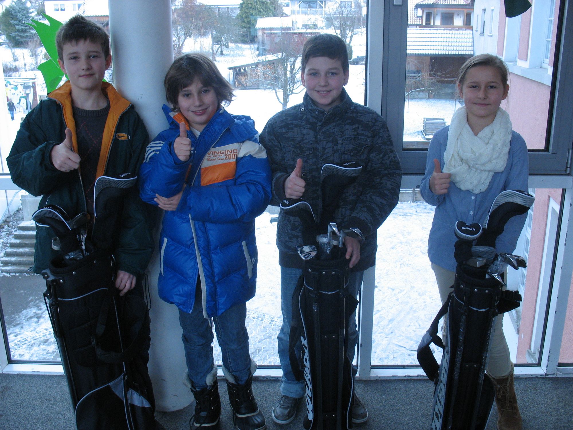 Diese Woche gab es ein kleines Vorweihnachtsgeschenk für uns Golfspieler. Der Förderverein hat uns drei Golf – Bags gesponsert. Bisher mussten wir immer mit Leihschläger aus dem Fundus des Golfclubs spielen. Dafür waren wir natürlich dankbar, denn ohne Schläger hätten wir ja gar nicht spielen können. Optimal war diese Lösung natürlich nicht. Die Schlägerlängen haben nicht immer gepasst, teilweise waren die Schläger auch schon sehr abgegriffen. Golftaschen hatten wir auch nicht und mussten mit mehreren Schläger in den Händen von Loch zu Loch ziehen. Das ändert sich nun.